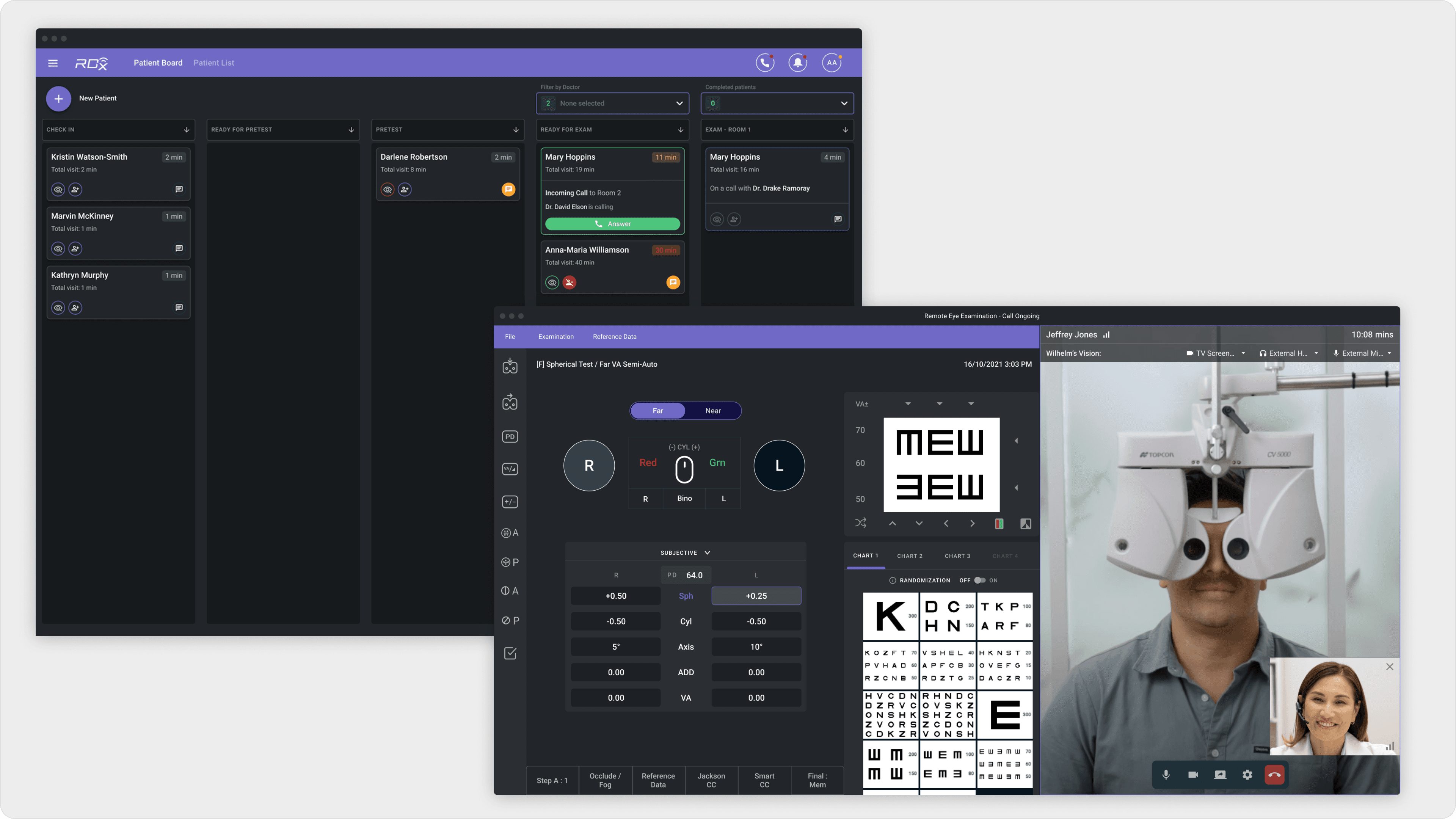 RDx by Topcon is a web platform for eye-care professionals. The platform enables eye clinics to manage patient care and allows doctors to perform eye diagnostics remotely, by operating the Phoropter device online.